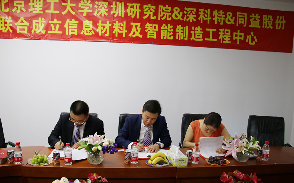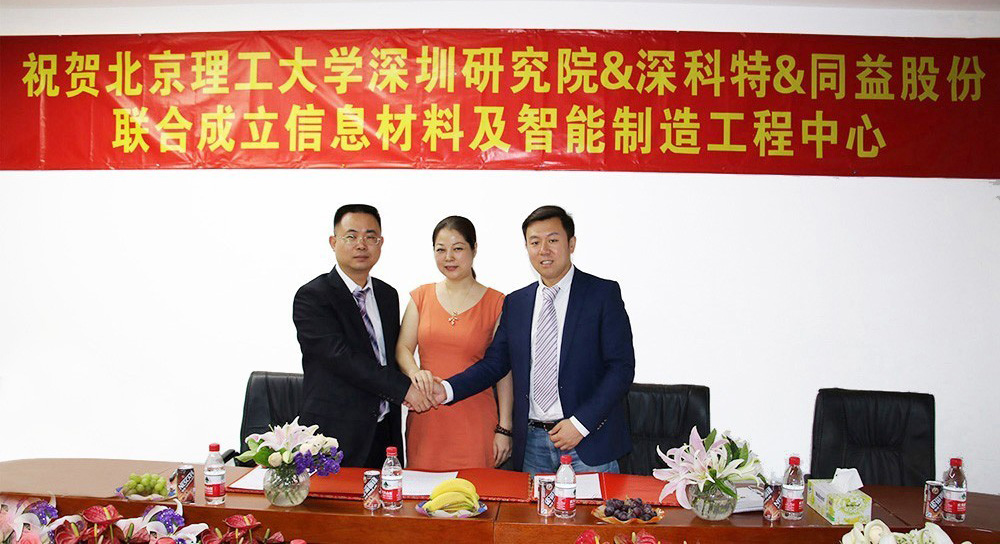 ? ? ? ?2016年5月11日上午,北京理工大學(xué)深圳研究院、深圳市同益實業(yè)股份有限公司、深圳市深科特信息技術(shù)有限公司戰(zhàn)略合作會議在同益股份總部舉行,北京理工大學(xué)深圳研究院院長、同益股份行政總裁、深科特總經(jīng)理正式簽署了戰(zhàn)略合作協(xié)議。